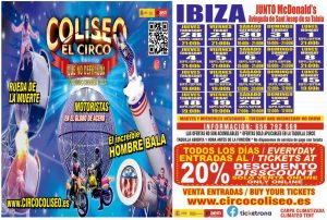 Circo Coliseo en Ibiza presenta Madagascar del 28 de Agosto al 21 de Septiembre Circo Coliseo en Ibiza trae un espectáculo esencialmente familiar, artísticamente ambicioso, que propone a todos los espectadores acercamiento y respeto hacia el mundo del circo, dejándoles ver que con pasión y perseverancia todo los retos se cumple. Guiados por nuestros queridos payasos viviremos esta experiencia de manera inolvidable, desde la risa y el entretenimiento. Las localidades de Palco son a precio único. Las localidades de Grada son a precio adulto o niño (Con 2 años hasta 17 años pagan como niño ambos incluidos). MENORES DE 24...