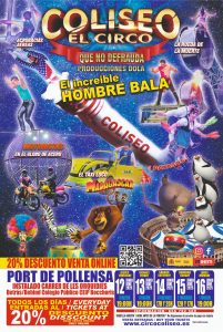 Circo Coliseo en Port de Pollensa presenta Madagascar del 12 al 16 de junio El Circo Coliseo en Port de Pollensa trae un espectáculo esencialmente familiar, artísticamente ambicioso, que propone a todos los espectadores acercamiento y respeto hacia el mundo del circo, dejándoles ver que con pasión y perseverancia todo los retos se cumple. Guiados por nuestros queridos payasos viviremos esta experiencia de manera inolvidable, desde la risa y el entretenimiento. Las localidades de Palco son a precio único. Las localidades de Grada son a precio adulto o niño (Con 2 años hasta 17 años pagan como niño ambos incluidos)....