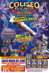 Circo Coliseo en Santa María del Camí trae un espectáculo esencialmente familiar, artísticamente ambicioso, que propone a todos los espectadores acercamiento y respeto hacia el mundo del circo, dejándoles ver que con pasión y perseverancia todo los retos se cumple.