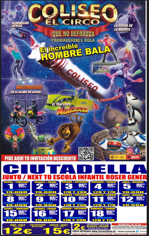 CARPA DEL CIRCO COLISEO en Piera Coliseo Avinguda de la Carretera d'Igualada, 97, Piera, Barcelona, SpainCirco Coliseo Presenta Madagascar en Piera es un espectáculo esencialmente familiar, artísticamente ambicioso, que propone a todos los espectadores acercamiento y respeto hacia el mundo del circo, dejándoles ver que con pasión y perseverancia todo los retos se cumple. Guiados por nuestros queridos payasos viviremos esta experiencia de manera inolvidable, desde la risa y el […]